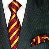 #10: Lorenzo Cana - Set : rot gold schwarze Krawatte mit Streifen und Einstecktuch aus Seide - 8445201